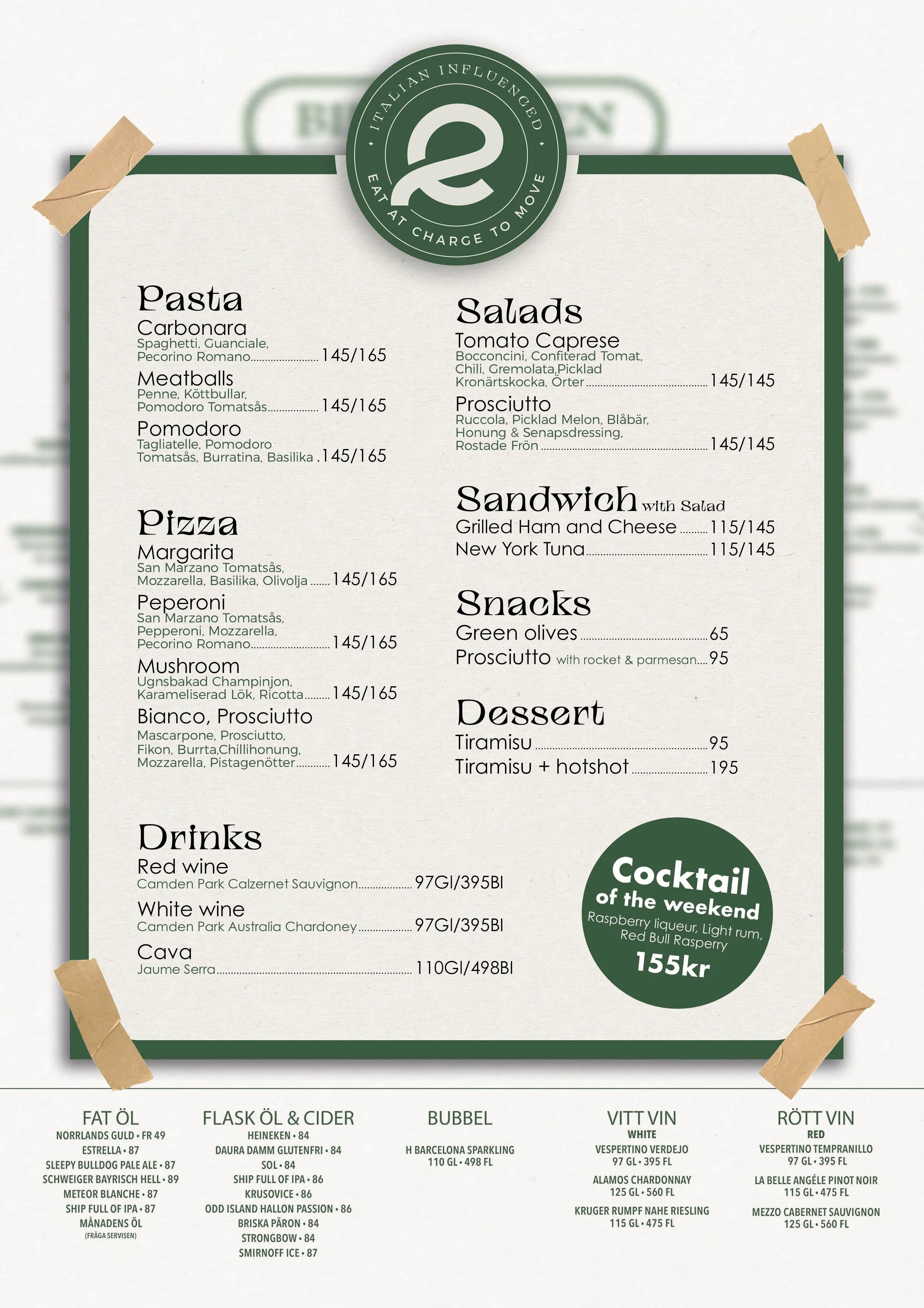 Eat at Charge to Move flyttar in i Hornhuset under tre dagar. Vi bjuder in till lunch, AW, middagar och pizzakvällar, där maten står i centrum.